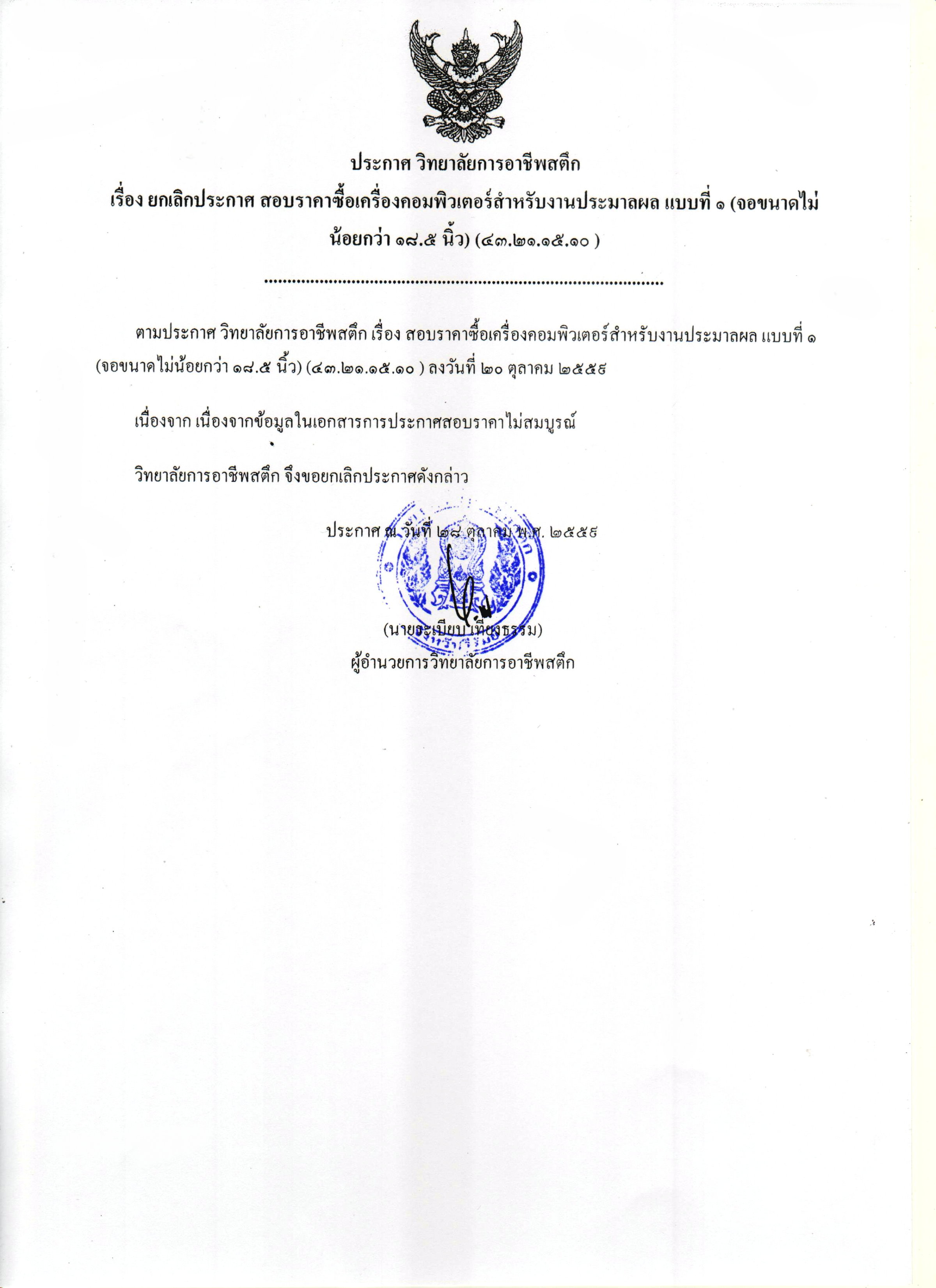 ยกเลิกประกาศ สอบราคาซื้อเครื่องคอมพิวเตอร์